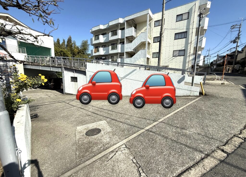 お車は、敷地内の白い壁に沿って駐車してください。
