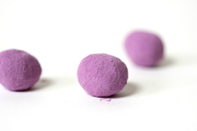 ピーナッツ(落花生)に寒梅粉の香ばしく焼き上げた生地、着色料は使用せず色鮮やかな紫芋のパウダーをまぶしました。スイートポテトのような味付けで、柔らかめのタイプの豆菓子で学生さんに人気です。