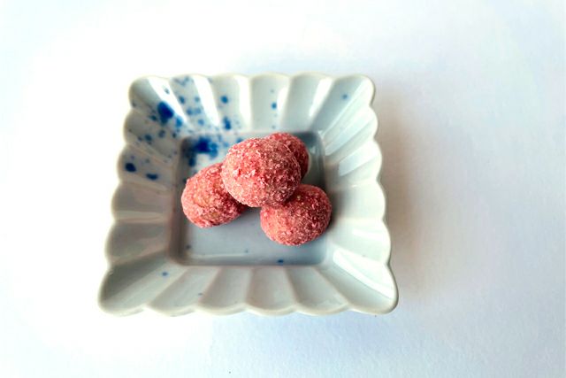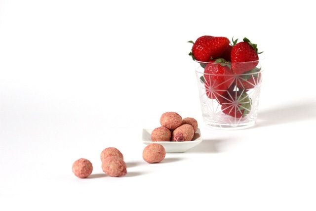 他では味わえない優しさ味味付けに科学的に作られた香料やシーズニングなどを使用すると簡単に製造できるのですがこの豆菓子は生のマスカルポーネチーズと少量のエダムチーズを3日間かけて生地に仕上げ、ドライいちごを潰しまた生地にかけます