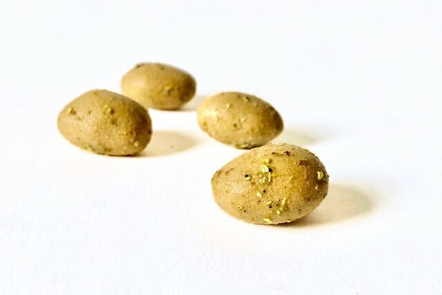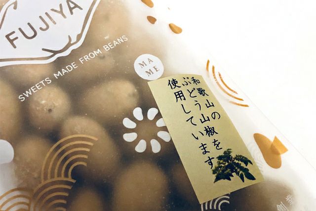 山椒の最高峰といわれている和歌山のぶどう山椒を使用大粒のアーモンドとの組み合わせは驚くほど上品な薫りと辛さカリッとした触感と、ほんのり舌が痺れる爽やかな辛さはうっすら顔の毛穴が開く辛さ、一袋一気に食べてしまえる感じ。