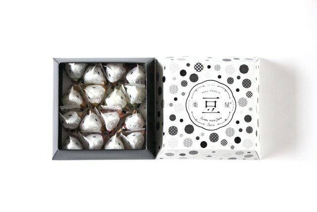 テトラタイプ豆菓子あーもんどエスプレッソがギフト箱に5個入りプチギフト・内祝・お礼・お返し・販促・寸志・和菓子の詰め合わせ 楽豆屋甘い物1番人気の豆菓子 あーもんどエスプレッソ(ギフト箱テトラ5個入り) 通常価格 ¥ 998 税込 楽豆屋で甘い物1番人気の豆菓子で、エスプレッソコーヒーの挽いたものを寒梅粉(もち米の粉)に混ぜカリッと仕上げたアーモンドを高知県産の和三盆糖で最後の味付けをしているので甘さもすっきり珈琲の香りと共に、口の中でなくなります。女性にとても人気の豆菓子です。 カートに入れる お気に入りに登録する