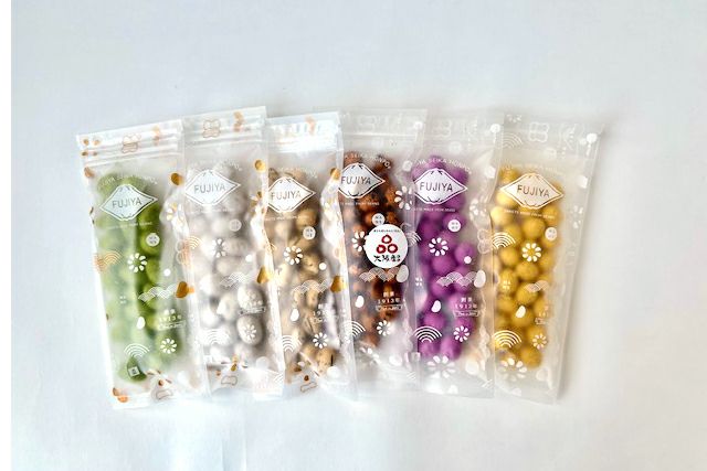 ●むらさきいもっぴー[原材料]ピーナッツ(米国産)、寒梅粉ミックス、小麦粉、粉砂糖、紫芋粉末、砂糖、植物油脂、水飴/膨張剤