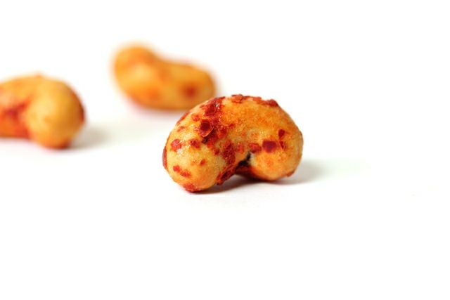 見た目は辛そうな唐辛子ですが、特別にこの商品の為の唐辛子の配合で作られ、辛みはありませんが香りがっとても良く男性のファンが多いカシューナッツの豆菓子です。