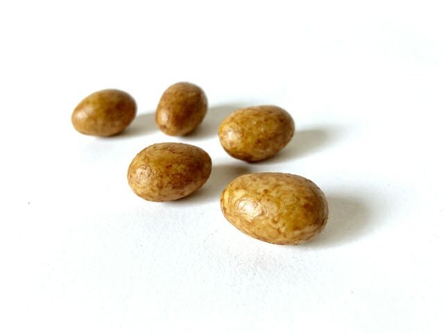 アーモンド×宇治抹茶 抹茶あーもんど 通常価格 ¥ 535 税込 2025年6月号の『レタスクラブ』にてご掲載いただきました。アーモンドを寒梅粉(もち米の粉)で包み、丁寧に焙煎し、薫り高い宇治抹茶をふんわりとまぶし、香ばしく仕上げました。上質のアーモンドを抹茶味にし、ほろ苦さとアーモンドの美味しさを楽しめる上品な豆菓子です。 詳細を見る お気に入りに登録する
