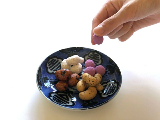 ピーナッツ×むらさき芋 むらさきいもっぴー 通常価格 ¥ 357 税込 ピーナッツ(落花生)に寒梅粉の香ばしく焼き上げた生地、着色料は使用せず色鮮やかな紫芋のパウダーをまぶしました。スイートポテトのような味付けで、柔らかめのタイプの豆菓子で学生さんに人気です。 詳細を見る お気に入りに登録する